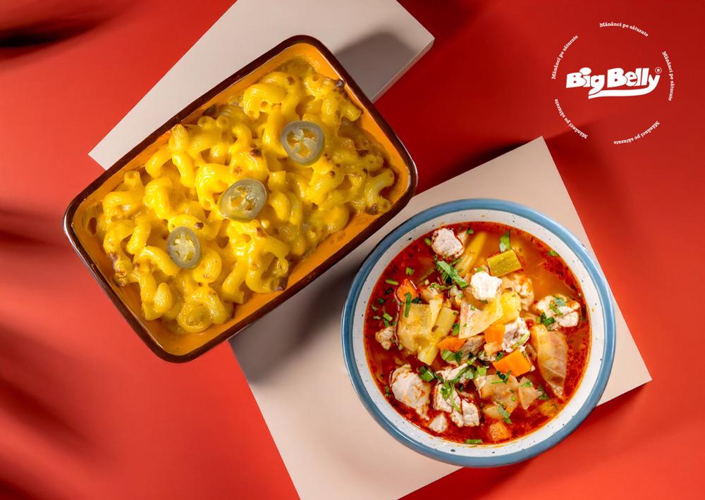 Bucură-te de o ciorbă de porc cu legume, bogată în gust și savoare, urmată de un mac & cheese cremos și delicios, preparat cu brânzeturi fine.